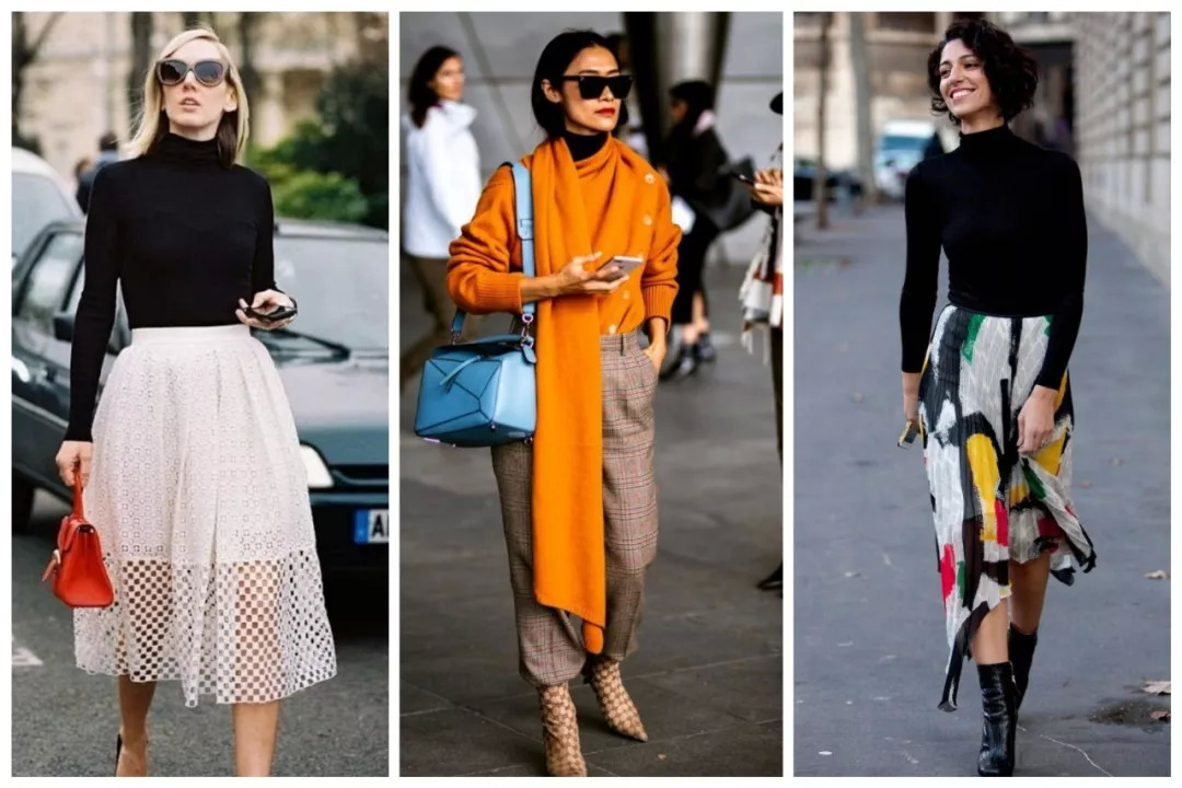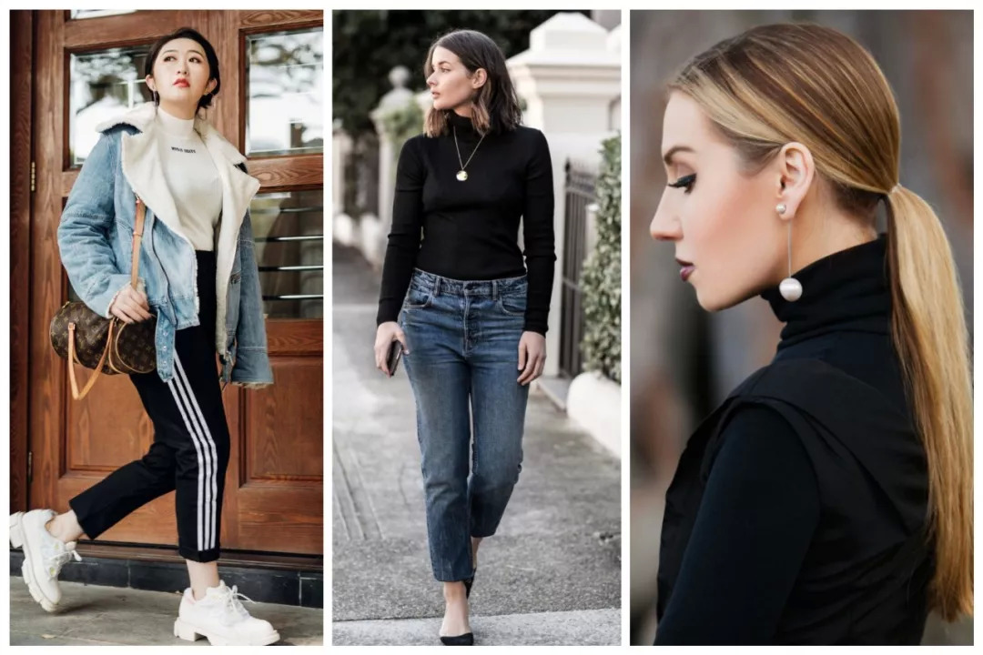 类似的,还有高领衫。这件单品对肉脸星人的确不友好,但也不是不能解决。