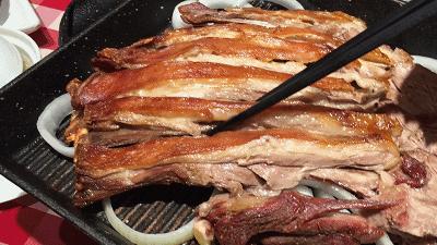 木炭烤鸽子是这家店的特色之一,鸽子烤的干干的,肉一丝一丝的,香气扑鼻。小羊肉、小牛肉、小牛腰等都是穿的小串,很容易入味,肥瘦相间用炭火烧烤得很透,入口非常香,再闷一大口清凉的海拉尔啤酒,忘却人间无数。