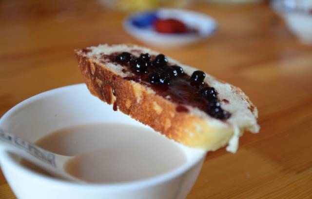 本人是个十足的酸奶控,每到一个地方必做的事儿就是去超市扫荡酸奶,内蒙超市里的酸奶品种虽然不如新疆和青海的多,但是呼伦贝尔各家小店里卖的自制酸奶口感特别棒,加上自制的野生蓝莓酱(对,感觉这里吃什么都配蓝莓酱),也是绝配了。早上街头还有新鲜的牛奶卖,打几斤回家自己煮,那香味真是绕梁三日。