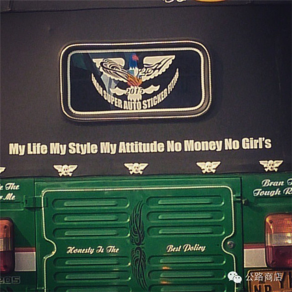 很多TukTuk从头到脚装饰的都是夸张闪亮的装饰物。乘客作为两边会贴上各种美女的裸照,两个硕大的乳房掩盖了车灯的不足。