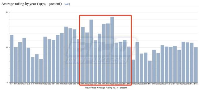 接下来,我们用几张图表告诉您NBA在90年代有多火爆,而这同样与NBC的转播息息相关——