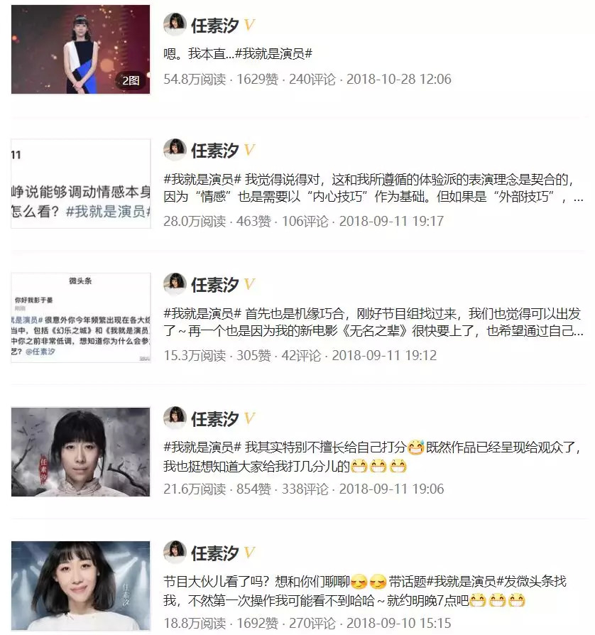 微头条中《我就是演员》嘉宾任素汐的微访谈。