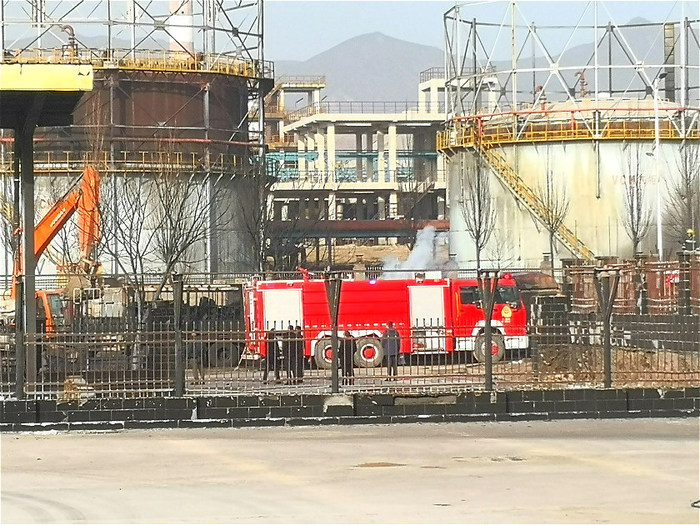 8. 消防车进行作业。