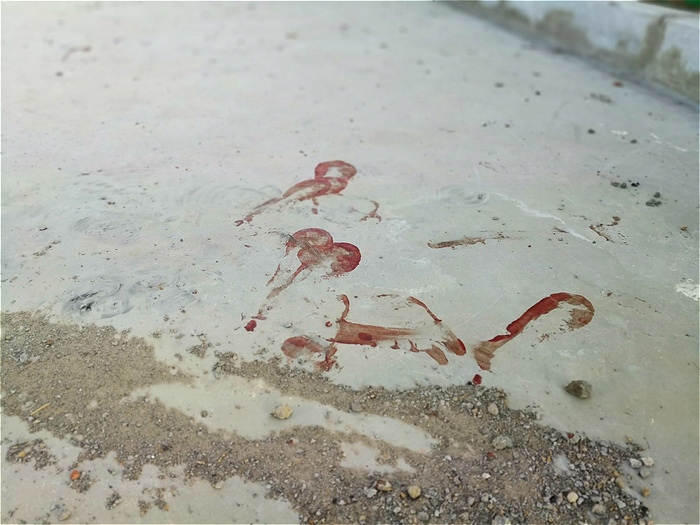 6. 事发现场,仍留有带血的脚印。