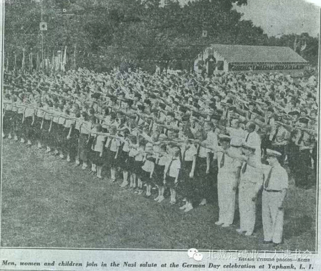 可想而知,当时就有很多美国人看他们非常不顺眼,总觉得这帮人随时要给希特勒带路。组织成立没多久,国会里就有人搞了个委员会进行调查,并最终认定它是纳粹党在美国的分部,结果新友会的德国籍领袖被驱逐出境。