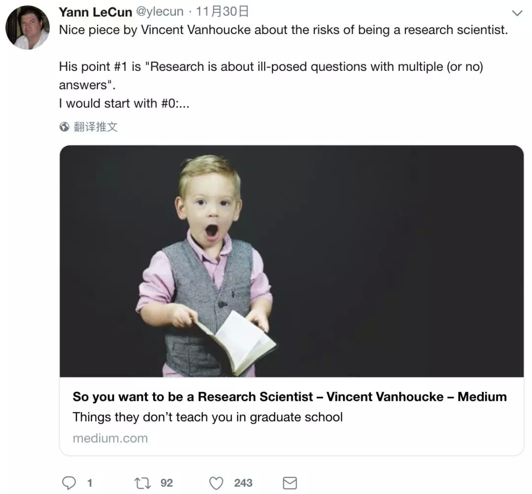 近日,谷歌主任科学家、谷歌大脑技术负责人Vincent Vanhoucke发表了一篇博客文章,分享了研究人员每天的工作怎样的,外界的人对研究科学家有什么样的误解等种种问题,有同感的人表示非常戳痛点。