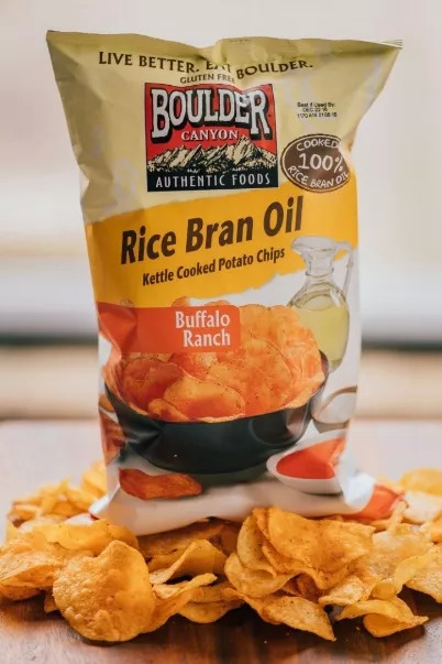 Boulder Canyon水煮薯片中使用的油是百分之百从糙米外层中提取出来的米糠油,以达到不饱和脂肪和单一不饱和脂肪的平衡。这款薯片在全美的农贸市场、天然食品超市、俱乐部和大型超市都有售卖。