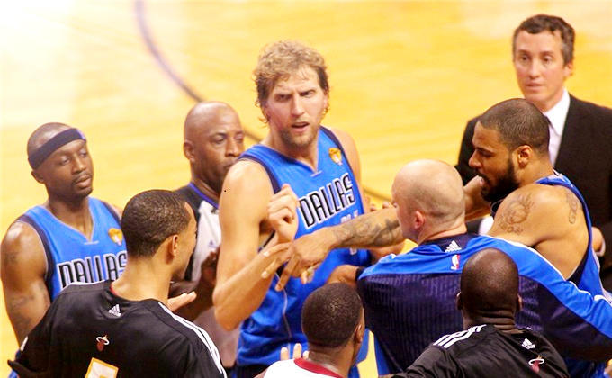 最后的NBA总冠军争夺战,小牛队遇到的是五年前的老对手——热火队,后者当时刚刚在前一个夏天聚集“三巨头”,两队都是只在各自分区输了三场比赛,这场“复仇之战”也是一触即发。