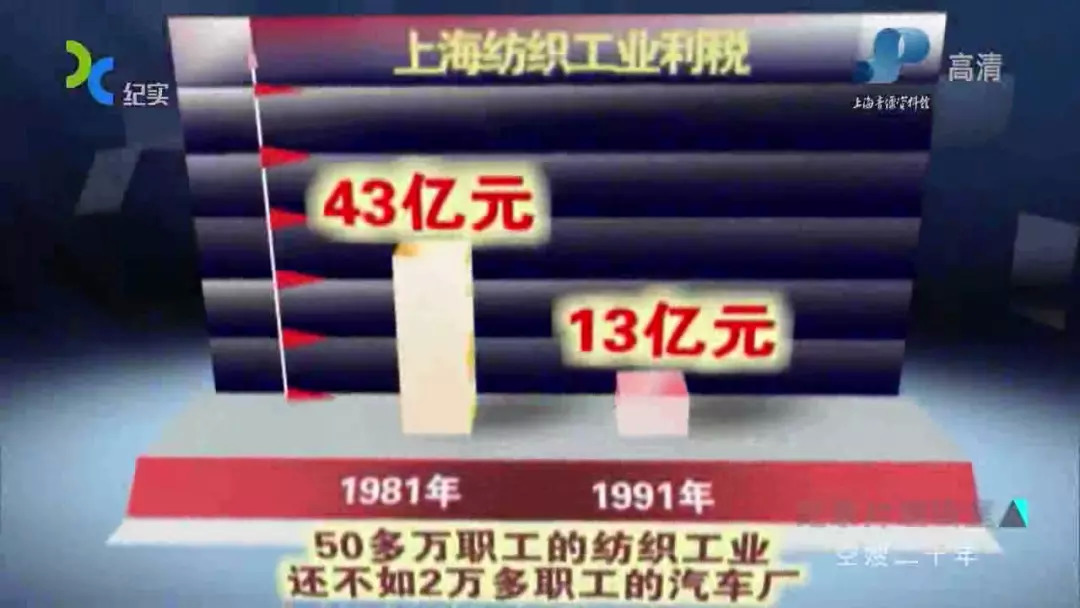 朱匡宇 :【在90年代初,还有一个很大的背景。那时候上海纺织有55万产业工人,有400多个企业,也是一个局级单位。而上海汽车只有2万4千个人,因此我们称它为小小的汽车工业,但是到了91年的时候,它们实现税利,已经突破了14个亿。】