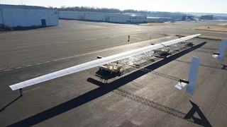 据介绍,“奥德修斯”的机翼表面、尾翼边缘和垂直尾翼上均覆盖了由汉能阿尔塔(Alta Devices)公司提供的柔性砷化镓薄膜太阳能电池。极光首席技术官和无人驾驶飞机系统副总裁汤姆•克兰西表示,汉能阿尔塔公司提供的砷化镓柔性电池阵列与复合表面板进行了整体固化以减轻重量,提高耐久性。
