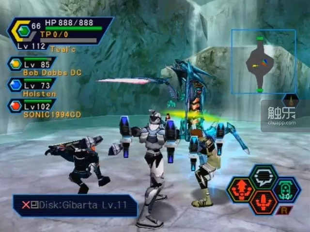 《梦幻之星Online》(简称PSO)是DC最重要的联机游戏,本作的副本规模不大,团队仅有4人,但其画面超越了同期的所有网络RPG,之前《啾啾火箭队》出现的丢包和延迟问题也得到了明显改善,仅凭DC自带的拨号上网就能流畅联机。