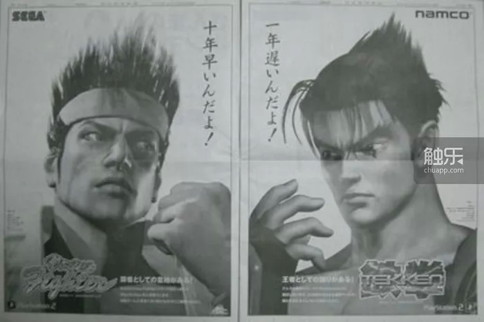 的确,在DC版《剑魂》发售后,NAMCO就和世嘉展开了一系列合作。NAMCO在世嘉的NAOMI基板上推出了光枪游戏《忍者突袭》,而世嘉也在NAMCO的PS2互换基板System 246上推出了另一款光枪游戏《吸血鬼之夜》。2001年初,世嘉的《VR战士4》和NAMCO的《铁拳4》还在报纸上刊登了跨页广告,表面上看是两个系列互相挑衅,其实是友好的合作宣传,后来《铁拳5》还使用了世嘉的街机网络。