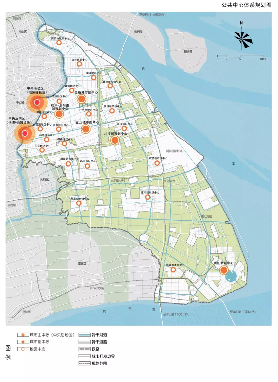 城市主中心,即中央活动区,浦东新区规划形成陆家嘴、世博-前滩2大功能板块,是上海城市核心功能的重要承载区,在强化商业、商务等功能的基础上,突出完善文化娱乐、旅游休闲、创新创意等多元功能。