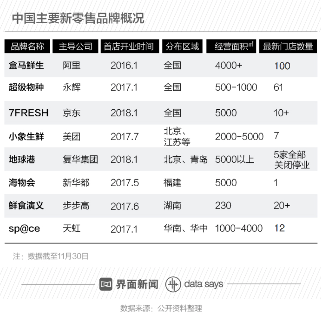 除了上述3家业界新零售网红,被打上新零售业态标签的还有美团开设的“小象生鲜”、天虹百货开设的天虹Sp@ce、11月因资金链断裂而关闭门店的“地球港”,在没有关闭之前,地球港在全国拥有5家门店。有业内人士透露,其北京还未开张的3家门店已经吸引了小象生鲜、苏宁苏鲜生等同业们的关注。