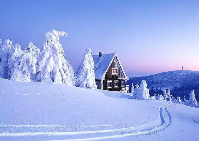 在表现雪花时,要寻找深色的背景物把雪花飘落的轨迹映衬出来,这样的背景其实并不难找,比如:楼房、围墙、树林、远处暗色的山峦(在雪完全覆盖地面以前)……总之,最好是与地面垂直的深色背景。另外,为突出雪飘的效果,可以选择下鹅毛大雪的日子或是当雪下到最大时进行拍摄。