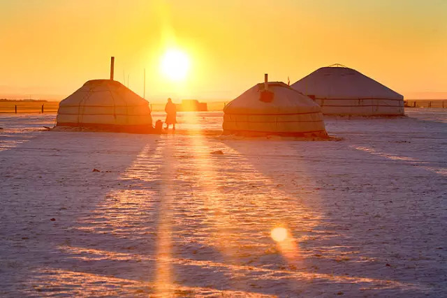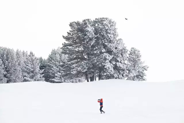 在雪景中,如果有人物的活动,必定会为画面添加不少灵动的感觉,由于雪地的明亮,我们可以很容易把雪中的人物处理成剪影效果,应先设定好构图,充分预测环境中人物的动向,耐心等待,果断按下快门。