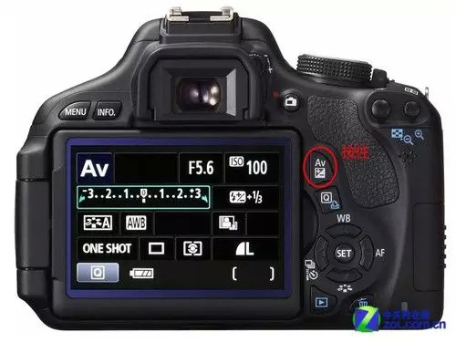 怎样可以强行增加曝光呢?如果是相机,那么一般会有这个按钮(红圈圈里面那个),按住它,向右拨动快门旁边的滚轮,AV下面那个刻度表一样的东西,就会往右边1、2、3跑过去,这就是加曝光了,一般来说,拍雪景要加1档到2档之间: