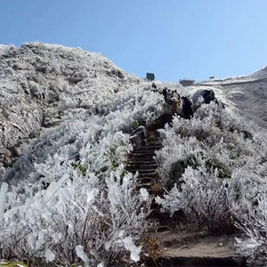 一年一次拥有雪景图的金子山,每一年都会吸引大量的外地游客。赏冰凌、登雪山、舔冰、与雪景一同合照.....广东人必定能玩嗨。