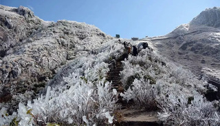 如果气温再下降,金子山就可能飘起细雪、出现冰凌,很快就会切换成一个白色的童话世界,形成一幅冰封大山的奇观 ,十分吸睛。