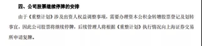 对于大部分因濒临暂停上市才走上重整道路的上市公司,以停牌重整状态挺过暂停上市,然后谋求恢复上市,是“破产重整”的老套路。然而,这种模式下,除了停牌时间被无限拉长外,其中的不确定性也是极大。万一重整失败,留给投资者的交易机会只能是退市整理期。