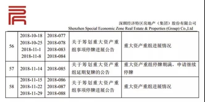 自2016年9月14日起停牌以来,在544个交易日内,深深房A已发布了58份停牌相关公告。公司此前部分相关公告: