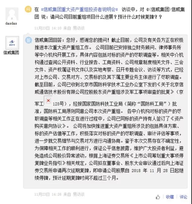 显然,在公司于11月23日召开的重组说明会上,停复牌成为被问及的核心问题。
