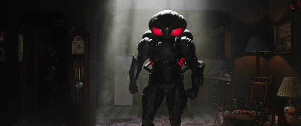 17. 让我们来聊一聊婴儿杀手黑蝠鲼吧!“黑蝠鲼”英文原名是“black manta”,这两个字与“福份”同音,听着挺吉利的,但有个我们更为熟悉的别名——魔鬼鱼。这种鱼长得非常有特点,《海底总动员2:多莉去哪儿》里面送大家上学的就是它。不过无论是漫画中还是电影中的造型,都真的很像“苍蝇侠”。(你认出来叶海亚·阿卜杜勒-迈丁其实还演过《马戏之王》里面赞达亚的哥哥了么?)