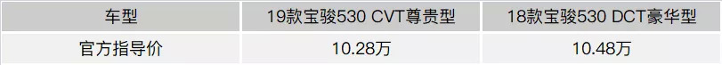 此次我们体验的车款为2019款宝骏530的顶配车款----1.5T CVT尊贵型(简称19款尊贵型),官方指导价为10.28万,定价略低于2018款次顶配型号----1.5T DCT豪华型(简称18款DCT豪华型)。单从外形看,19款并未做升级改进,可见该车的颜值与设计仍能适应当下的市场审美。