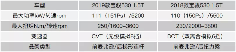 相比外表,19款的内在到有着“质”的转变,它搭载了新一代的动力组合----1.5T涡轮增压引擎+CVT无级变速器,后悬架则升级为梯形连杆独立悬架,强化三大件后无疑会提升19款宝骏530的竞争实力,下面来简单了解一下新动力组合的优势所在。