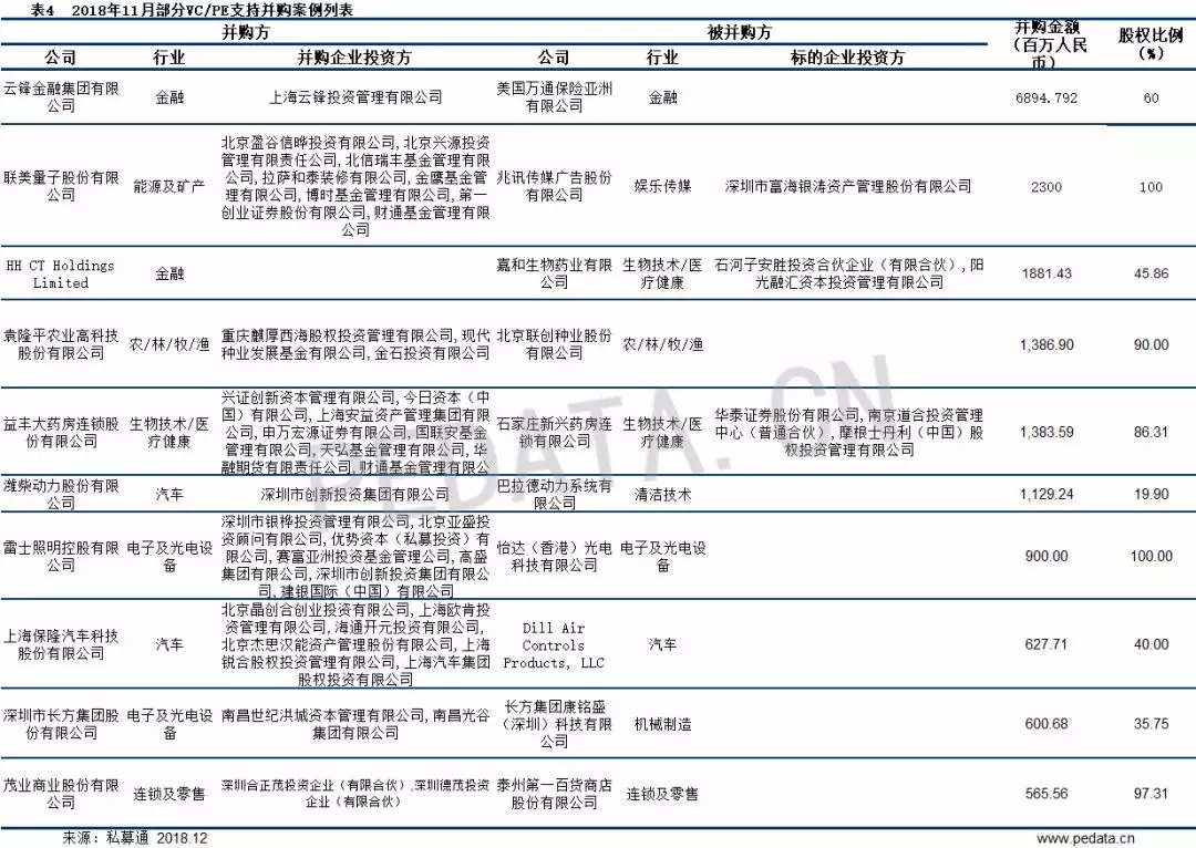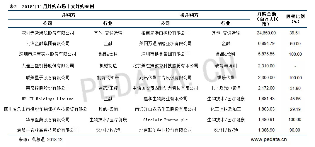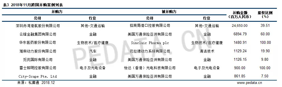 2018年11月并购市场的整体情况