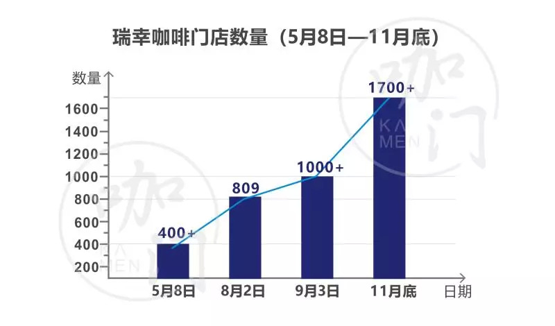 而最新的数据是,截至11月底,瑞幸已在全国21大城市,完成门店布局1700+家。