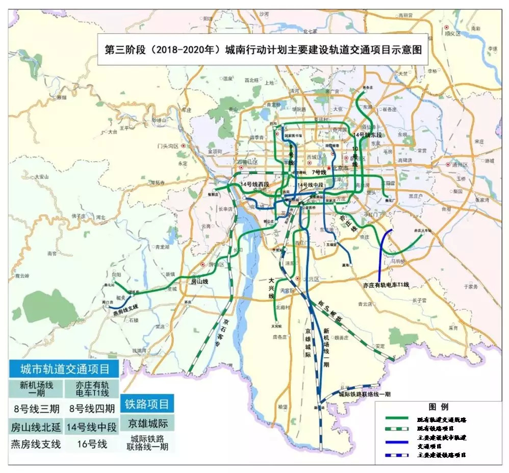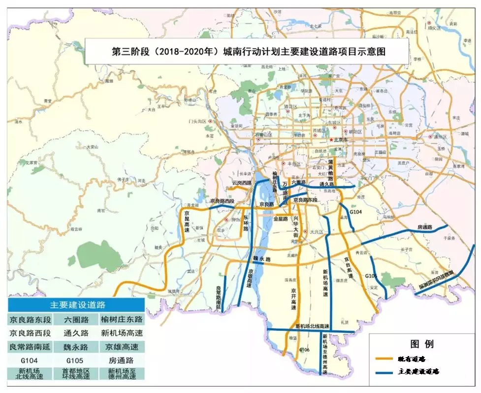根据《计划》,将加强南部地区与中心城区、北京城市副中心和河北雄安新区的连通,加快推进京雄城际铁路、京雄高速公路等重要通道建设。建成北京新机场“五纵两横一联络”骨干交通)。