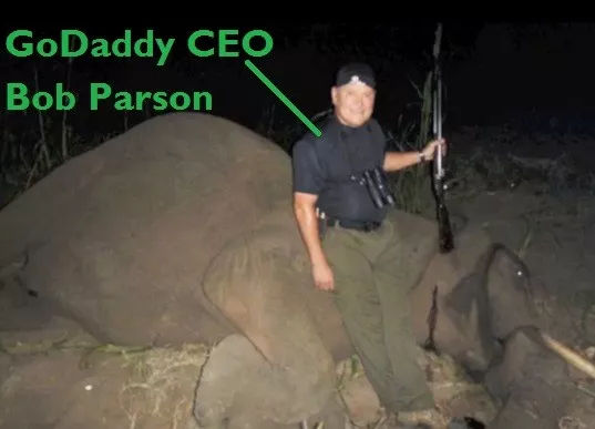 帕森斯本人是一个狩猎游戏骨灰粉,他把游戏中的场景搬到现实中:在他自己的GoDaddy网站上出现了他在津巴布韦狩猎大象的视频,视频中的大象随后还被撕成碎片并被吃掉了。外界估测这场狩猎花费了他50万美元。