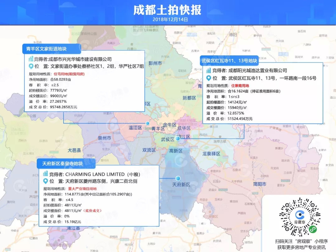 青羊区光华板块的58.3亩租赁用地引起了6家房企举牌,创下了今年10月以来最高溢价率27.27%。