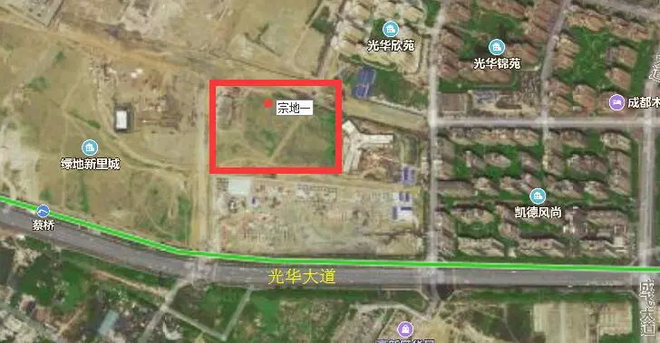 地块南临光华大道和绿地跨贸港产业展示中心,距离四号线蔡桥地铁站600米左右,周边的商业有凯德风尚、恒大翡翠华庭等社区的底商,还有万达广场、鹏瑞利青羊广场都在宗地周边约3公里范围,周边配套较完善。