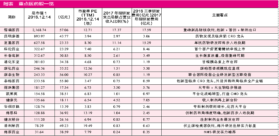 医药股作为2018年上半年表现最为抢眼的行业之一,下半年在疫苗黑天鹅事件、医保局带量采购等利空因素作用下持续走弱。12月6日,“4+7”城市药品带量采购预中标结果出炉,A股、港股医药股集体大跳水。此后数日,医药股持续下跌,引发一轮市值大缩水。