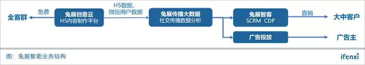 2017年第四季度起,兔展凭借通过帮助企业形成的一方数据中心,通过与腾讯社交广告、头条的API打通,协助企业更精准地做效果广告投放,以H5作为落地页,配以传播数据监测,完成一方数据应用的闭环。广告投放业务也为兔展开拓了新的营收来源,带来营收规模的扩大。