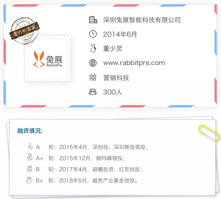 其中,兔展传播大数据于2015年上线,是传播数据分析平台。2016年,兔展智客上线,是企业营销内容以及全渠道营销管理平台,包含CMS、渠道管理、消费者数据平台CDP、SCRM等,这些产品都是以SaaS模式提供服务。