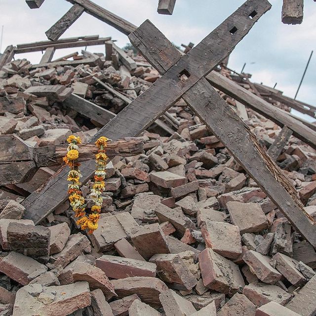 这就是我一直在等的借口了。只是我没想过它会这么坏。我看着邻座先生手机里友人传来的照片,巴格塔普尔的神庙塌成一地碎石头,杜巴广场也没了。近千年文明遗迹顷刻崩塌,泰米尔区倒的倒、散的散,已经成为一片空城。黄土红砖下掩埋的尸体,纱丽颜色动人。