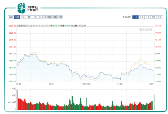 12月18日,隔夜外盘表现不佳美股又是2%以上的跌法,受此影响,A股今日低开,随后冲高回落,继续调整,个股表现疲软,地产、证券、雄安等板块成杀跌主力军,强势股全线溃退。在避险情绪升温下,黄金、军工股逆市受追捧,但市场缺乏成交量及热点支撑,短线弱势难改。午后指数有所回暖,创业板指率先翻红,创投板块与壳资源也先后举起,资金紧张情绪稍显回暖,沪指、深成指跌幅收窄,沪市成交额再度不足千亿。