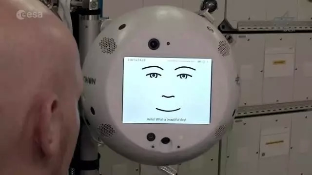 最为人熟知的空间站AI,应该就是前一阵被SpaceX送上太空的Cimon了,这款长着一张大饼脸和蜜汁微笑的机器人全名是移动式成员互动伙伴。在空间站中它的主要作用就是陪伴宇航员聊天,通过语言和面部表情识别来感知他们的情绪。