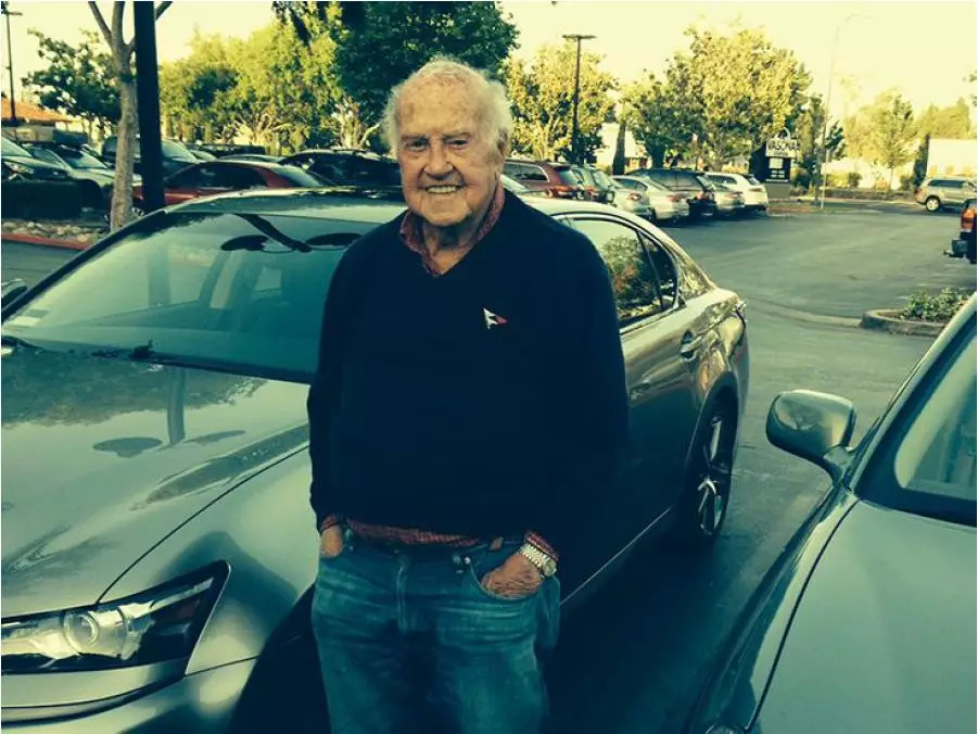 永远年轻:作者的97岁岳父,Charles Roberts,站在他的新雷克萨斯车前。图片由作者提供。