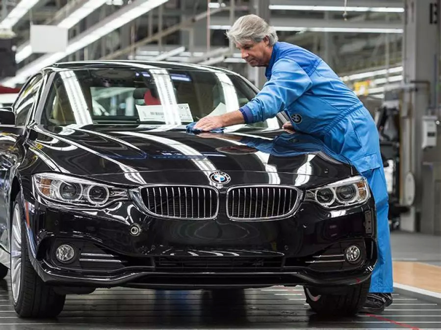 适应老龄化:德国南部的厂房里一位工人正在为一辆宝马车抛光。该公司发现,对其装配线进行简单的人体工程学改造(例如椅子和定制鞋具)可提高年长工人的生产率。图片来源:ARMIN WEIGEL/AFP/Getty Images。