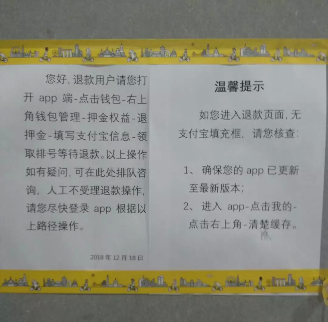 张贴在ofo入口处的自助申请提醒