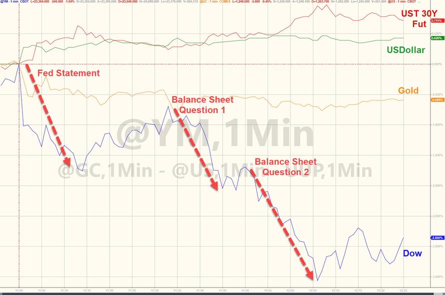 一些年前,我们吸取了市场对资产负债表新闻非常敏感的教训,所以我们谨慎考虑如何让它(资产负债表)正常化,考虑让它自动驾驶(automatic pilot),调节利率适应未来的数据。这是一个很好的决定。我认为,“我没有看到我们改变这点”。