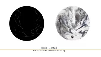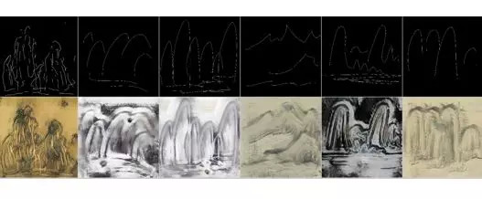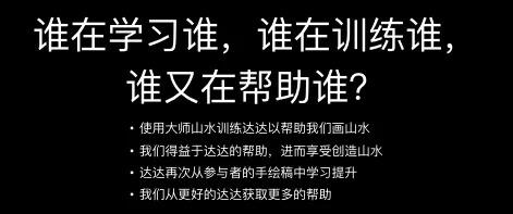 然后我将我们人类的手绘数据,再一次地使用到训练人工智能达达上,然后达达再一次地从我们的数据,学到了一个更好的版本,去创造水墨山水。