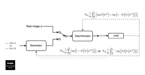 简单来讲,这里面有两个东西。一个叫generator,生成器。另一个叫discriminator,姑且称之为辨别器。
