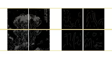再进一步,我通过一些计算机视觉的手段,以大师的山水画作为起点,反向生成边界, 这些是我前面提到的风格A,也就是我们的手绘数据,然后进行训练。