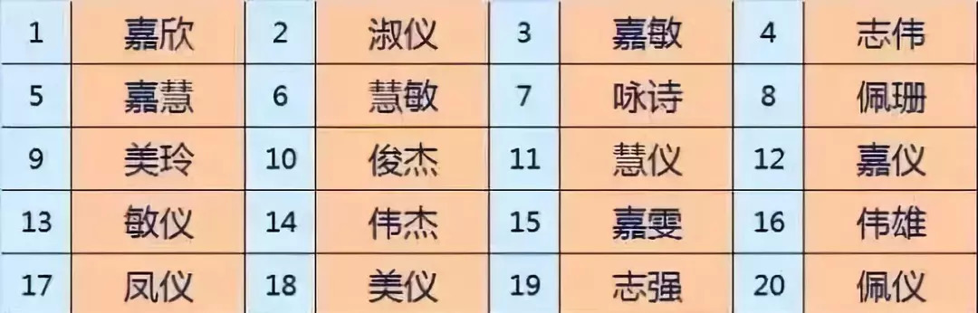 在80后和90后这一波人里,“嘉”、“欣”、“志”、“伟”、“玲”、“敏”等几个单字的出现率极高,“嘉欣”、“志伟”遍地跑。