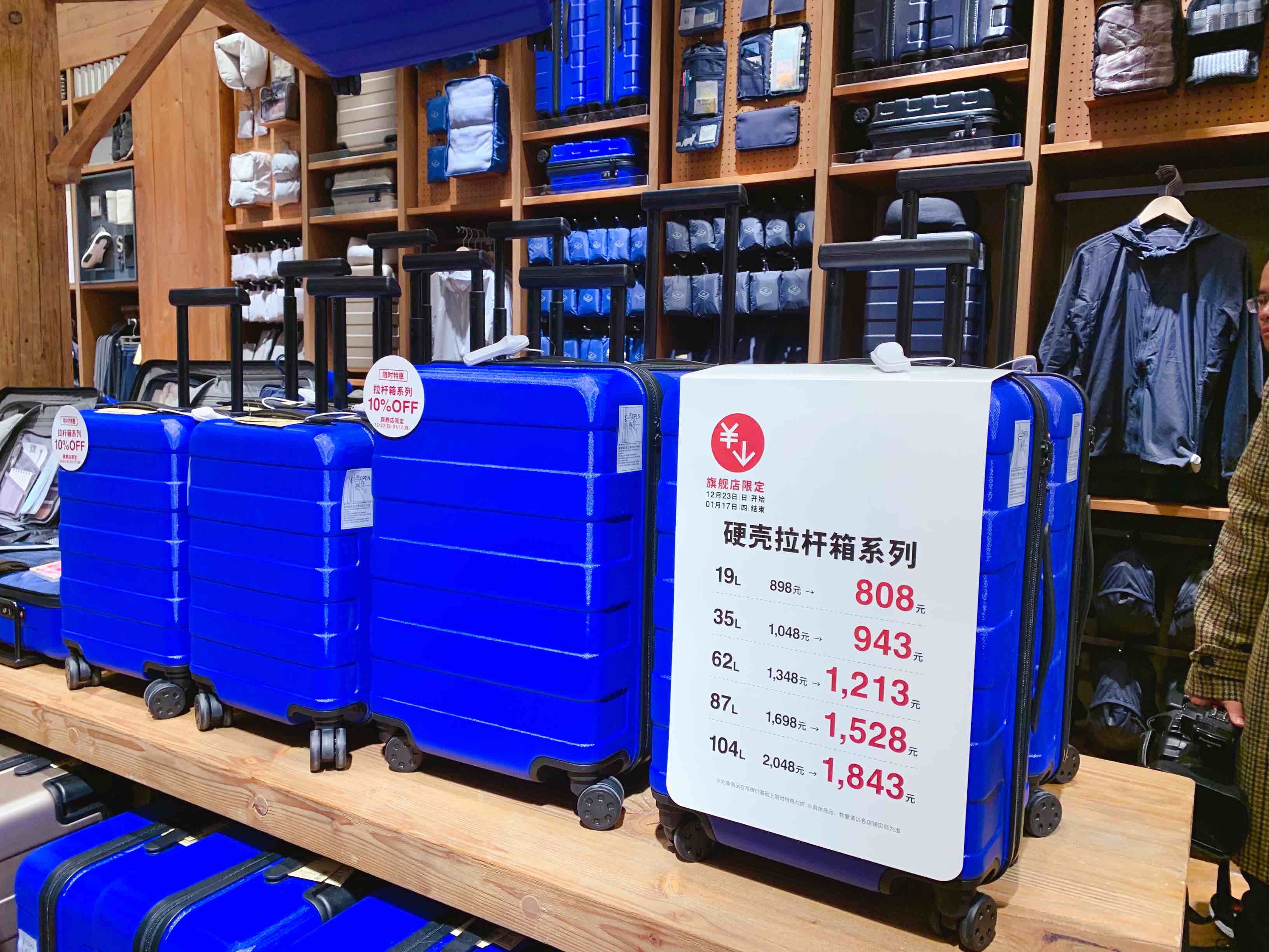 首先是旅行箱。区别于成都店的红色、上海店的白色,南京店的旅行箱是宝蓝色的。